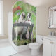 Two dogs a pug puppy and Boston Terrier in a cart Shower Curtain