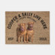 This welcome mat can be personalised with your dog’s name, the slogan can also be changed or you could use a picture of your own dog (make sure it's transparent). Text reads: Cooper & Sally Live Here…. All treats welcome.