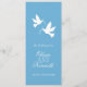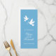 Double-sided simple two white doves with two blue ribbons wedding reception dinner menu. Uniquely designed by Sarah Trett for www.mylittleedenweddings.com
