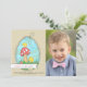 Send Easter greetings to family and friends with this whimsical photo card featuring an egg-shaped window with two baby chicks playing near a mushroom. (FP)