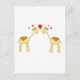 Two Facing Giraffes with Hearts. Cartoon. Postcard