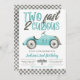♥️ This adorable Two Fast 2 Curious invitation is great for a boy's 2nd birthday party themed with a vintage aqua blue race car and chequered racing accents. A matching design is included for the backside.