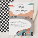 Start your engines! It’s time to celebrate your little one turning two with this Two Fast, Two Curious race car invitation! Featuring retro style cars, playful track graphics, and a soft, vintage colour palette, this design is perfect for a toddler who’s always on the go. Easily personalise the name, date, and party details for a high-speed second birthday celebration.
