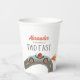 Two Fast Race Car 2nd Birthday paper cups with blue retro race car.