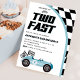 Two Fast Blue Race Car Birthday Party Invitation