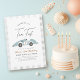 This cute "growing up two fast" boy's 2nd/second birthday invitation features a white background with a light blue race car. The reverse side features a blue background with race car patterns. Personalise it for your needs. You can find matching products at my store.
