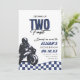 Your little guy is growing up TWO fast! Celebrate your sons 2nd birthday with our blue, black and white speedster second birthday invitation.