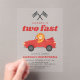Cute 2nd birthday invitations featuring illustrations of a chequered racing flag and a lion driving a red sports car, with a transparent acrylic background. The design captures the thrill of a race car theme, making it perfect for little speed enthusiasts. Personalise the "Two Fast" birthday party invite with your child's name and party details for a fun and speedy celebration!