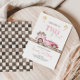 Get set for a thrilling birthday celebration with our pink 'TWO Fast' themed invitation. Showcasing a sleek pink race car and a fluttering chequered flag, this card is perfect for a girl who loves speed. With playful pink fonts and customisable details, it's sure to kickstart an unforgettable, adrenaline-filled birthday party.
