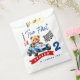 Celebrate your little one's second birthday in style with this adorable race car themed birthday favour bag! The design showcases a charming teddy bear cruising in a race car adorned with the number 2, zooming along race tracks. With trendy typography spelling out "growing up too fast," along with all the essential party details, this favour bag sets the perfect tone for a fun-filled celebration.