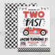 Start the race off right, with these fun invitations for your little ones birthday party! Two Fast Red Race Car Theme invites that are easily PERSONALIZE with your details!