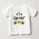 Boys racing 2nd birthday party t-shirt featuring a yellow watercolor race car, chequered flags, a trophy, and the saying "TWO FAST".