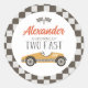 Growing up Two Fast Race Car 2nd Birthday sticker with yellow retro race car.