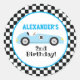 Two Fast Racecar Blue Racing Boy Birthday Classic Round Sticker