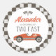 Growing up Two Fast Race Car 2nd Birthday stickers with red retro race car.