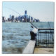 Designs by Susan Savad -- A fisherman is getting ready to fish off the pier in Hoboken New Jersey on a beautiful sunny afternoon with the Manhattan skyline in the distance. The partially completed Freedom Tower can be seen in the distance.