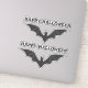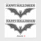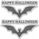 Contour stickers with two flying bats, mostly solid black (except for the accents on the wings). There are also two Happy Halloween greetings, with Eyeballs as the default font.