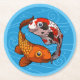 Two Friendly Koi Carp Swimming in a Circle Cartoon Round Paper Coaster