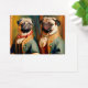 Design with two funny anthromorphic pugs in vintage costumes. The design imitates an oil portrait of the 18th century.