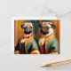 Two Funny Anthropomorphic Vintage Pug Postcard