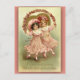 Two young girls dance, with a wreath of pink flowers. Reminiscent of a simpler time, these pretty Valentine's cards have themes of Valentine's Day, spring, love, children and happy times. Lovely vintage and Victorian art that you can customise by adding your own text on front or back, as well as inside the cards.