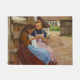 This design features a painting by the Danish artist Hans Andersen Brendekilde (1857–1942). It depicts two girls doing needlework, either crocheting or knitting fabrics. They are sitting together on a small wooden bench in a farmyard in rural Denmark. There is a small cat in the background. Further back there appears to be a woman sowing seeds or picking vegetables. The original artwork was painted by H.A. Brendekilde in 1902.