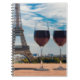 Two glasses of wine on Eiffel tower and Paris skyline background.