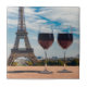 Two glasses of wine on Eiffel tower and Paris skyline background.
