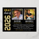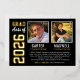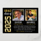 Announce your two high school graduates in style with this real foil graduation announcement and party invitation. Card is designed for two grads and features their photos with a simple and masculine design with sports jersey inspired lettering. Black, gold foil, and white colours.