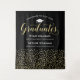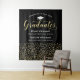 Celebrate two graduates in glamorous style with this black and gold graduation party backdrop! The design features "Congrats to Our Graduates" in shimmering gold script, a gold grad cap, and two personalized name and school fields above a cascade of gold confetti dots on a rich black background. Perfect for twins, siblings, or joint graduation celebrations. Customize all text for a stunning celebration centerpiece.