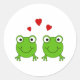 Two green frogs with red hearts. classic round sticker