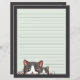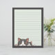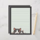 Two grey kittens on lined paper with dark grey boarder.