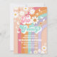 Celebrate your little ones special day with this retro-inspired "Two Groovy- birthday invitation! Featuring pastel rainbow colors, cheerful daisies, butterflies, peace signs, and a smiling flower, this design captures the fun and free-spirited vibe of the 1960s and 70s. Perfect for a girls second birthday party, this playful boho invitation sets the tone for peace, love, and joy. Customize with your party details and make your childs milestone celebration unforgettable.