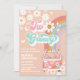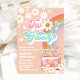 Celebrate your little ones special day with this retro "Two Groovy- birthday invitation featuring a peach background, cheerful daisies, pastel rainbow, butterflies, and a flower-power van. Perfect for a 2nd birthday party, this playful design captures the spirit of peace, love, and fun. With whimsical fonts and vibrant colours, it sets the tone for a joyful celebration. Customise easily with your party details and create a keepsake guests will love.