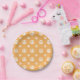 Two Groovy Retro Style Birthday party plates with peace signs. orange.