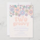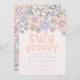 Retro inspired Two Groovy second birthday invitation with 70's style flowers and boho fonts and colours.