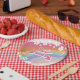 Two Groovy Retro Rainbow 2nd birthday plates with daisies.
