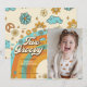 Two Groovy Retro Rainbow 2nd Birthday Party Photo Invitation