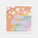 Two Groovy Retro Rainbow birthday napkins with daisies.
