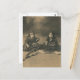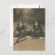This is a gorgeous post card with an old photograph of two young sisters in gypsy outfits with a doll posing for the camera. So cute