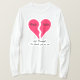 Proclaim your love with this tee shirt that matches the man's shirt for a set. Great to wear on the honeymoon with the words above saying "Just Married!" The design features two halves of a heart that match together. A personalised name is on each heart half and is easy to customise. The customisable words under the hearts say "our hearts join as one" and can be changed to your own words. The colours are red and black. Fully customisable to make a great shower gift.