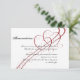 This beautiful and simple design, called Two Hearts as One Wedding, has a bright white background. To the upper right there are two modern red heart graphics that are linked together. There are smaller hearts scattered near the larger ones. From the upper right to the lower left there are two red ribbons that sweep across the deisgn with gold 'glitter' accents. This set has invitations, save the date cards, response cards, thank you cards, table number tent cards, envelope seals, wine labels, binders, return address labels and many more day-of wedding stationery pieces, favours, and gifts available. Use the envelope seal stickers for any of your DIY gifts - these are available in both large and small sizes! All elements are printed on our high quality products, they do not include any real gold, jewels, embossing, or other textile elements. All designs are copyright Noteable Expressions, Inc. All rights reserved.