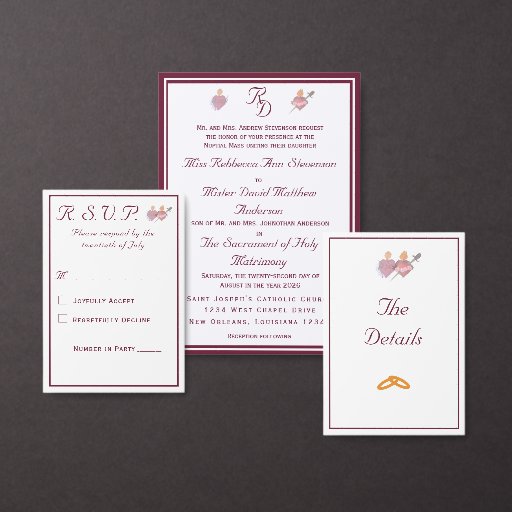 Two Hearts Catholic Wedding Suite (Burgundy)Designed by Joy Domangue