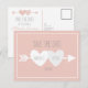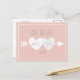 A sweet Two Hearts save the date postcard with a dusty pink background designed with love by Aubergine and Purple. Perfect of a romantic wedding. Bride and Groom names along with date are customisable.