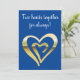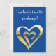Two entwined hearts in a gold metallic look on a blue background. Edit the text for a personal message.