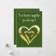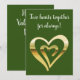 Two hearts together metallic gold green holiday card