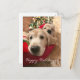 Send special holiday greetings this season with this cute Christmas postcard! Design features a photograph of two golden retriever dogs who are laying on a red pillow, beneath a decorated tree. Could they be waiting for Santa Claus to arrive? Customisable front text reads, "Happy Holidays!" while the back text states, "Wishing you the best, this Christmas season & always."