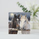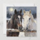 Two Horses on a Snowy Farm | Blank Card