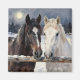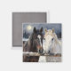 Two Horses on a Snowy Farm Under the Moon Magnet