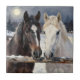 Two Horses on a Snowy Farm Under the Moon Tile